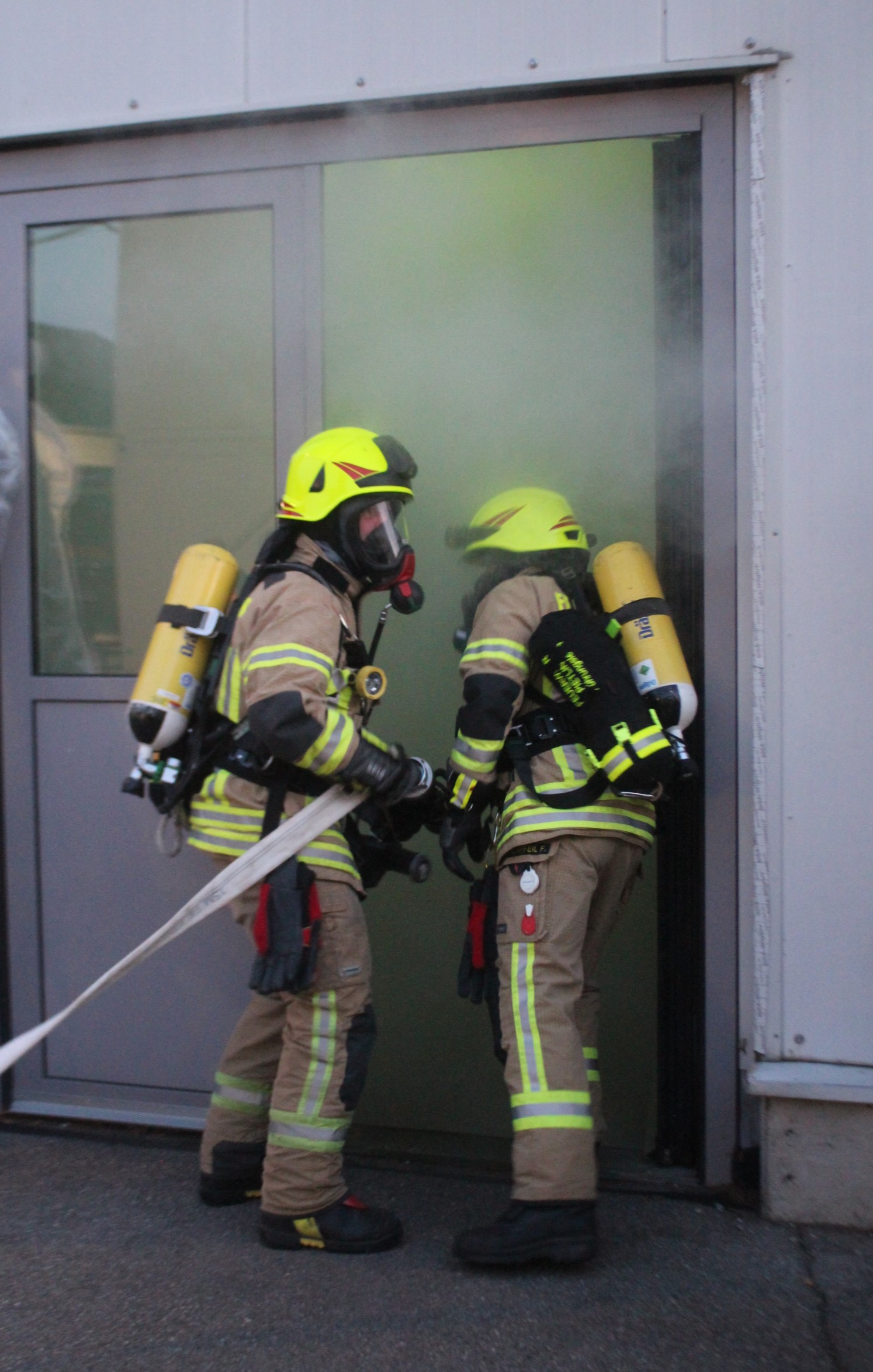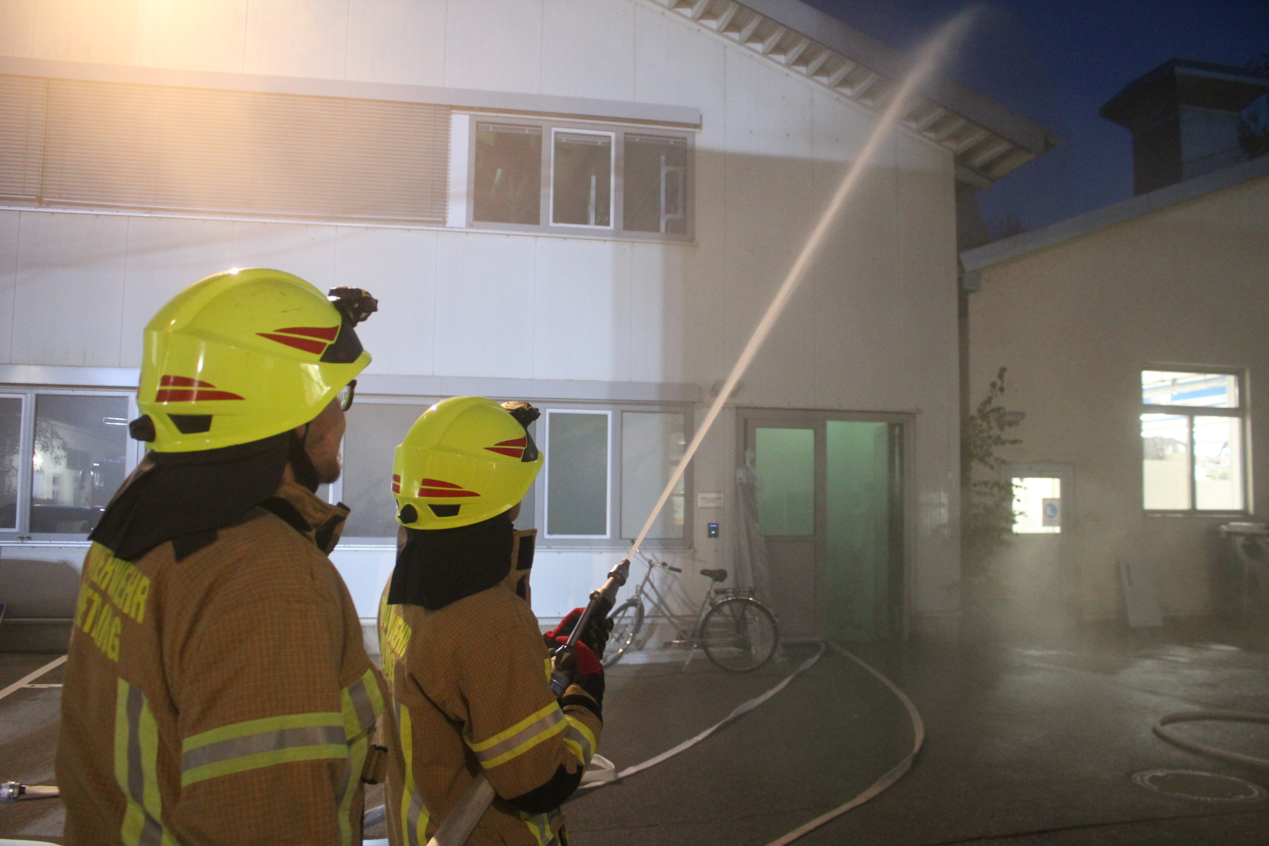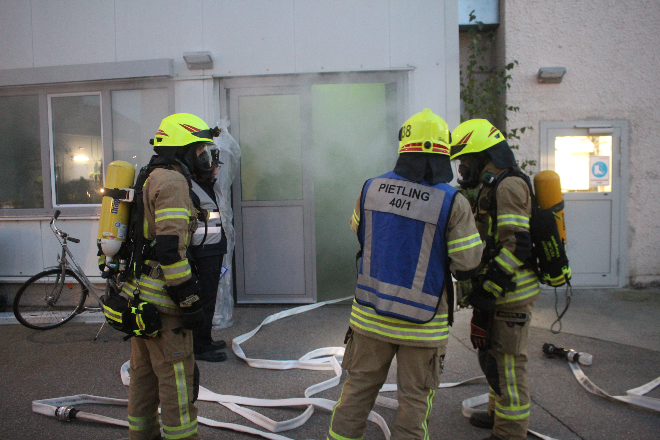 Fridolfing. Rauch in einer Industriehalle, die Brandmeldeanlage schlägt Alarm, daraufhin alarmiert die Integrierte Leitstelle die örtlich zuständige Feuerwehr und wenige Minuten später treffen die ersten Löschmannschaften ein und beginnen mit der Erkundung. Was hat zu dem Brandalarm geführt, brennt es wirklich oder war es ein Fehlalarm? Dieses Szenario war Ausgangslage für eine Großübung der Feuerwehren in Fridolfing und Umgebung auf dem Werksgelände der Firma Rosenberger Hochfrequenztechnik.