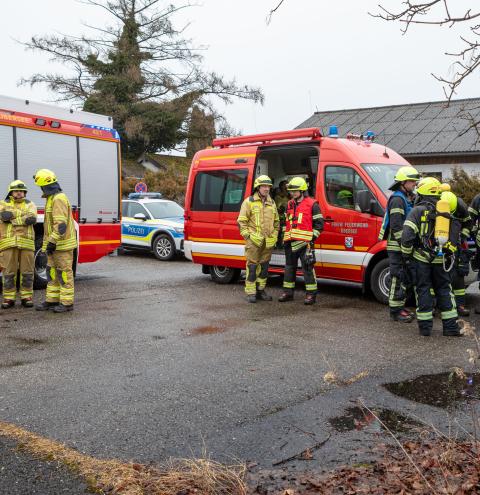 Die ersten Einsatzkräfte trafen innerhalb kurzer Zeit ein und verschafften sich rasch einen Überblick über die Lage. „Bei unserem Eintreffen drang tatsächlich eine Rauchsäule aus der Halle; im Inneren war ein brennender Unrathaufen zu erkennen“, informiert Lucas Geppert, stellvertretender Kommandant und Einsatzleiter der Feuerwehr Übersee.
