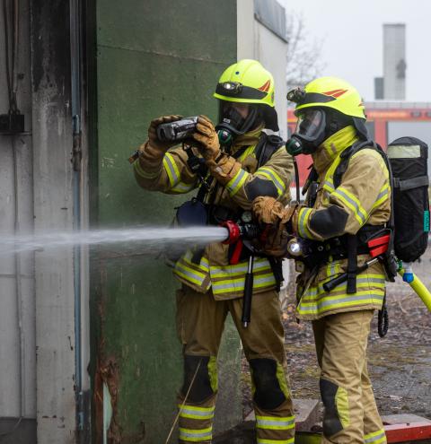 Mehrere Atemschutzgeräteträger wurden daraufhin in das Gebäude entsandt und konnten den Brand zügig löschen. Innerhalb einer viertel Stunde konnten auch die Nachlöscharbeiten abgeschlossen werden. Anschließend wurde der Unrathaufen mittels Wärmebildkamera auf eventuelle Glutnester kontrolliert. Aufgrund der Größe der Halle nahm die anschließende Belüftung jedoch einige Zeit in Anspruch. Mithilfe von Überdrucklüftern wurde der Brandrauch aus dem Gebäude geblasen. Die Wasserversorgung war durch die Tanks der Löschfahrzeuge sichergestellt.
