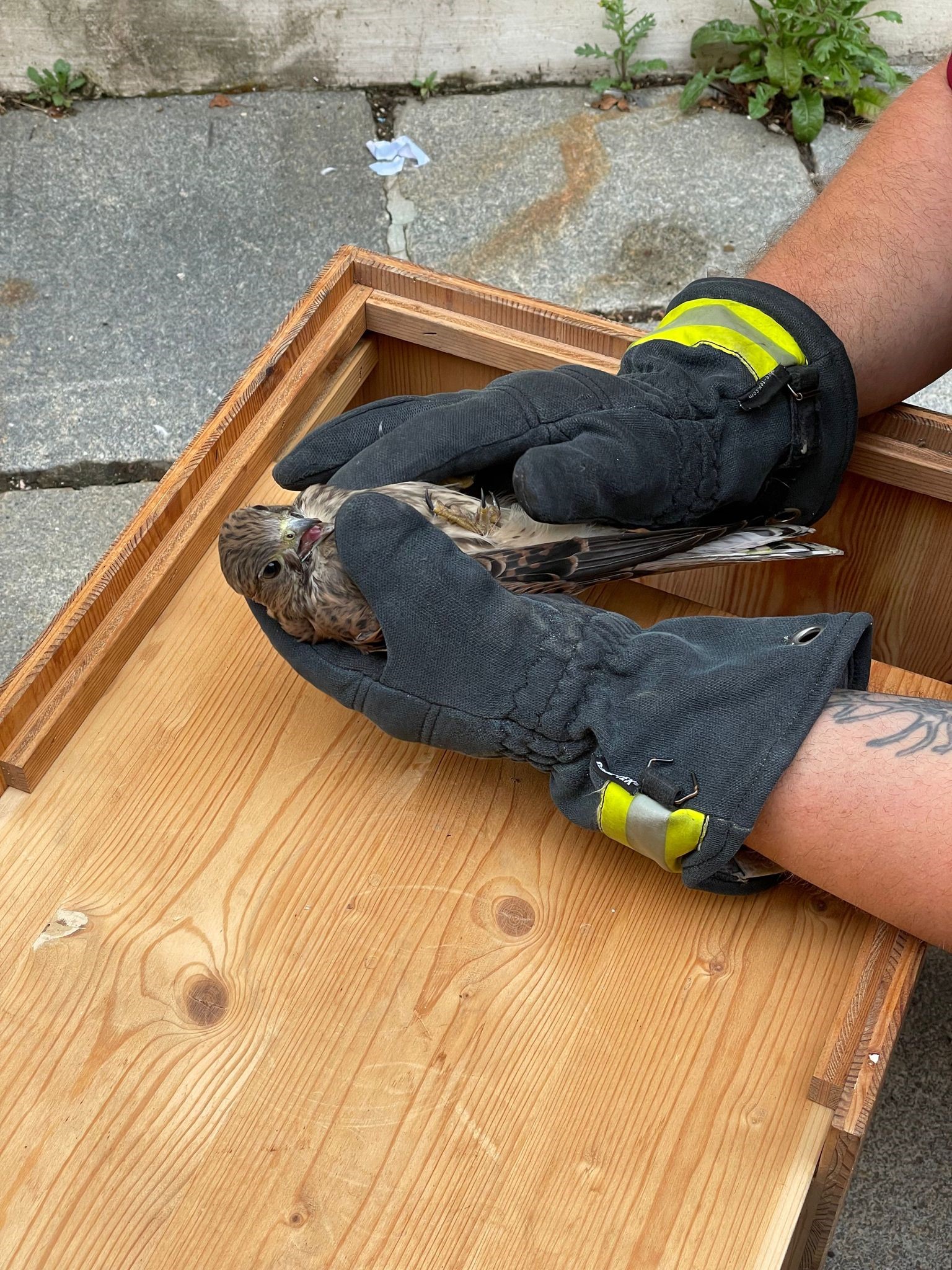 „Nach einer ersten Erkundung an der Einsatzstelle stellten wir fest, dass sich der Falke nicht selbstständig aus dem offenen Kamin befreien konnte“, erklärte Hirschpoltner und ergänzte, „dass wir uns anschließend bei einer Falknerin telefonisch rückversichert haben, wie wir den Burschen am schonendsten und damit tierfreundlichsten retten können“. Somit erfolgte als erste Maßnahme die Abdunkelung des Kamins, damit wurde der Bruchpilot in seiner misslichen Lage beruhigt und die Rettung konnte durchgeführt werden.