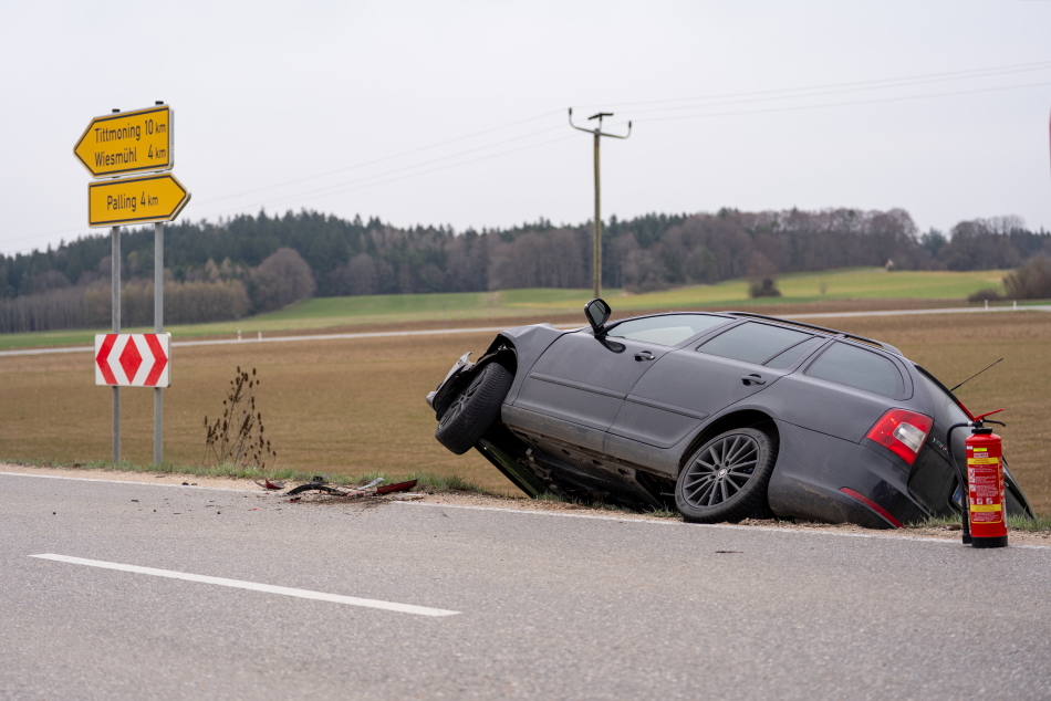 Auf der Staatsstraße 2093 auf Höhe Kagern kam es zu einem Verkehrsunfall mit zwei beteiligten PKW. Laut Informationen von vor Ort fuhr ein mit zwei Personen besetzter VW-Bus von Tengling in Fahrtrichtung Palling. Dieser wollte in Kagern nach rechts abbiegen. Ein hinter ihm fahrender Skodafahrer bemerkte dies allerdings zu spät und krachte in das Heck des vorausfahrenden Fahrzeuges. Durch den Aufprall drehte sich der Skoda und rutschte die Böschung hinab, wo er anschließend zum Stillstand kam. Der Fahrer des Skodas erlitt durch den Unfall einen Schock. Die beiden Insassen des VW blieben unverletzt. Der Rettungsdienst war mit einem Rettungswagen und dem Rettungshubschrauber Christoph 14 vor Ort. Die Feuerwehren aus Palling und Tengling waren mit fünf Fahrzeugen und 32 Einsatzkräften im Einsatz. Der Verkehr wurde durch die Feuerwehren während der Unfallaufnahme umgeleitet. Der Skoda musste durch ein Abschleppunternehmen geborgen werden. Der VW-Bus konnte seine Fahrt anschließend fortsetzen. Die Polizei Traunreut nahm den Unfall auf.