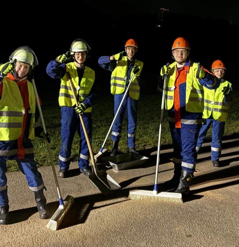 Teamarbeit war anschließend bei einem Geschicklichkeitsspiel gefragt: Gemeinsam mussten die Jugendlichen mit Seilen und einem Haken Holzklötze anheben und daraus einen Turm bauen – eine Übung, die nur durch gute Zusammenarbeit funktionierte. Nach dem Frühstück und etwas Morgensport wurde gemeinsam aufgeräumt. Ein letzter „Fehlalarm“ sorgte nochmals für Aufregung, bevor der 24-Stunden-Übungstag nach dem Mittagessen am Samstagnachmittag endete.