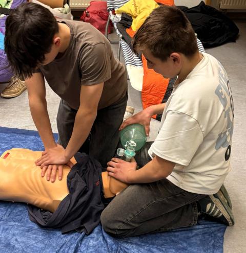 Nach dem Abendessen ging es mit einer Übung zur Absturzsicherung weiter. Am sogenannten „Säuresee“ musste ein Gegenstand aus einem abgesperrten Bereich geborgen werden, ohne den Boden zu berühren. Parallel dazu stand Erste Hilfe auf dem Ausbildungsplan, unter anderem Reanimation sowie die Helmabnahme bei einem Motorradunfall. Zwischendurch blieb auch Zeit für Freizeit und Fußballspielen.