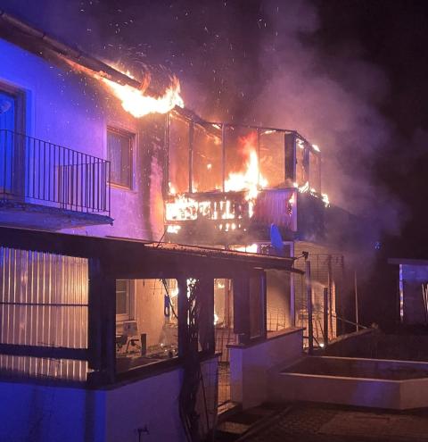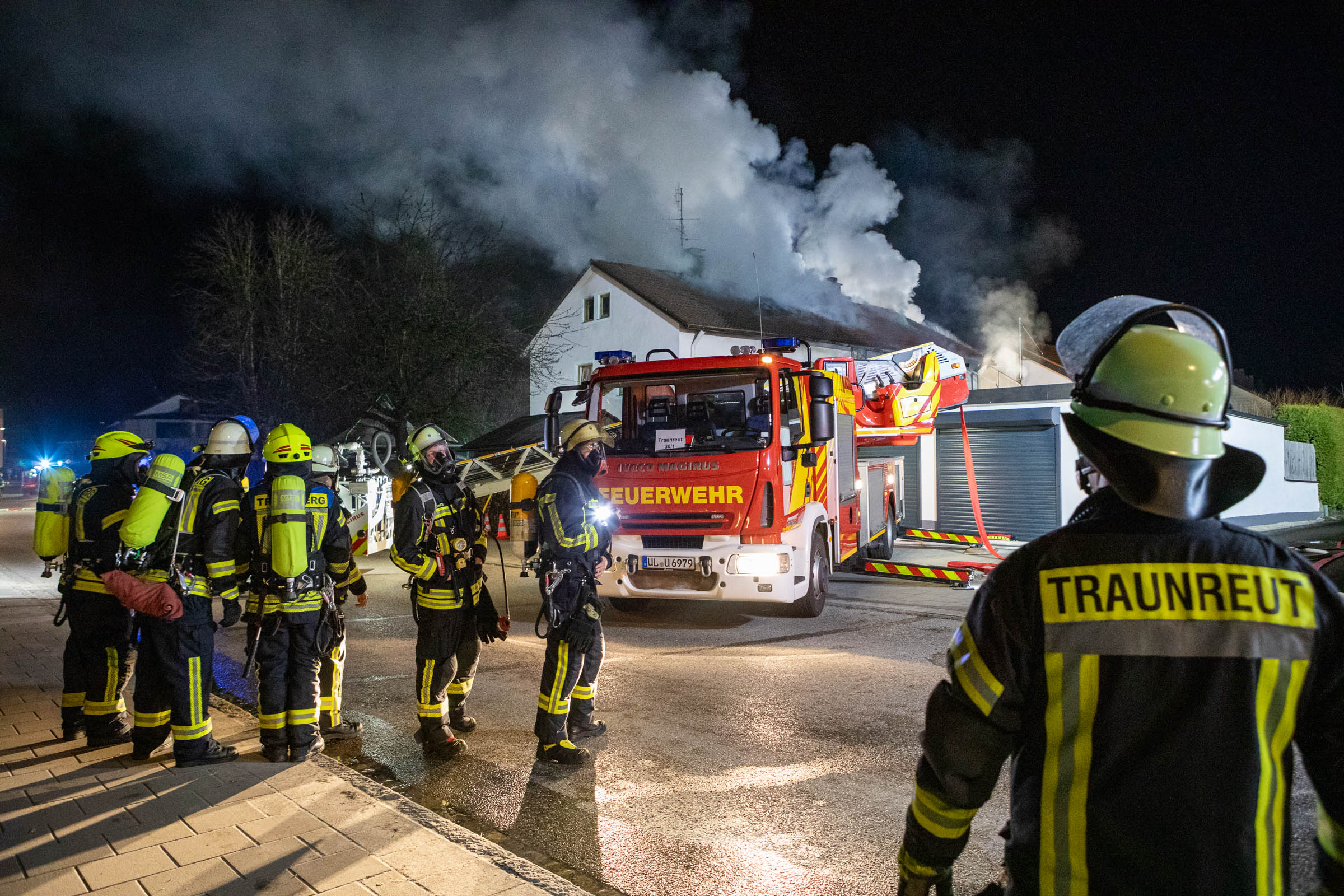 Die Feuerwehr Traunreut wurde zusammen mit den Feuerwehren Altenmarkt, Matzing, Palling, Pierling, Stein, Traunwalchen und Trostberg mit dem Einsatzstichwort „B4 – ausgedehnter Gebäudebrand“ in die Johann-Hinrich-Wichern-Straße alarmiert. Beim Eintreffen der Einsatzkräfte schlugen in einem Bereich eines Doppelhauses meterhohe Flammen aus dem Gebäude. Zunächst galt eine Bewohnerin als vermisst, was einen umfangreichen Einsatz von Atemschutzgeräteträgern zur Menschenrettung auslöste. Der Sachschaden liegt nach einer ersten Einschätzung im niedrigen sechsstelligen Bereich. Das Wohnhaus ist derzeit nicht bewohnbar. Die Ursache des Brandes wird nun von Beamten der Kriminalpolizei ermittelt. Ein Feuerwehrmann wurde bei den Löscharbeiten leicht verletzt. Nach rund zwei Stunden konnte die Feuerwehr der Leitstelle Traunstein „Feuer unter Kontrolle“ melden. Anschließend waren umfangreiche Nachlöscharbeiten erforderlich, die bis etwa 2 Uhr andauerten.