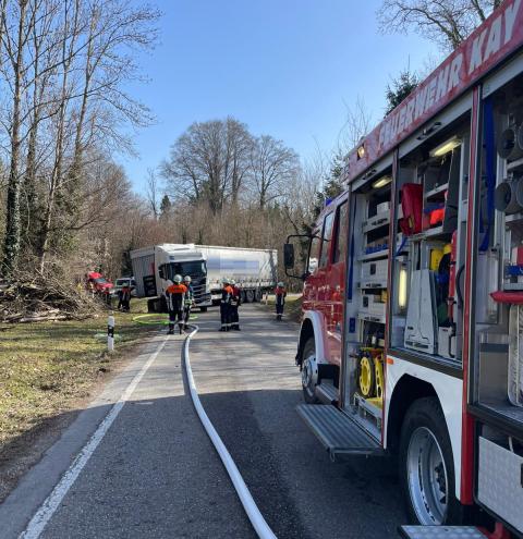Verkehrsunfall mit LKW – Im Einsatz die Feuerwehren Kay und Kirchheim