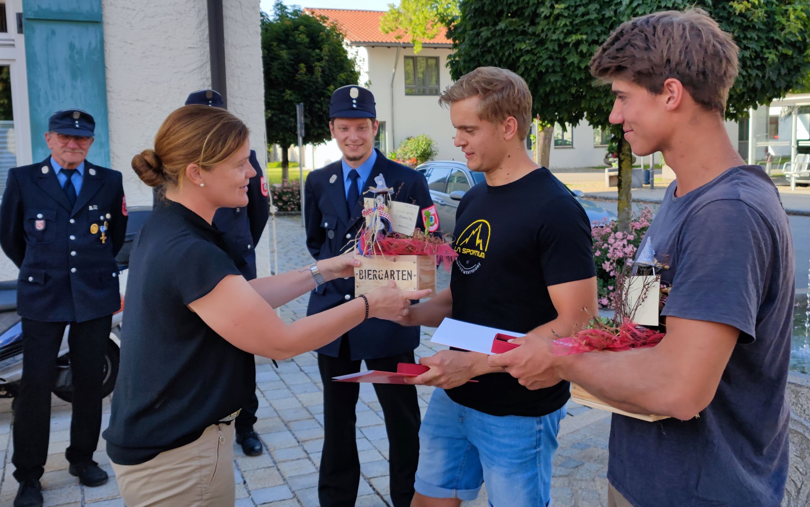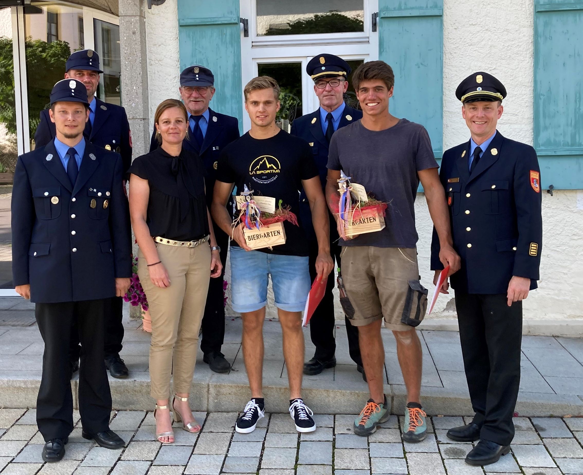 Grassaus 2. Bürgermeisterin Daniela Ludwig bedankte sich im Namen der Gemeinde für die vorbildliche Hilfe der Beiden. „Ihr habt euch selbst in Gefahr gebracht, um einen Menschen zu helfen und habt zudem in diesen schlimmen Minuten die verzweifelte Ehefrau großartig unterstützt“, so brachte sie ihre Anerkennung zum Ausdruck. Als Dankeschön überreichte die Vizebürgermeisterin den beiden Ersthelfern einen „Grassauer Biergartenkorb“ mit Gutscheinen für einen Wirtshausbesuch im Gemeindegebiet.