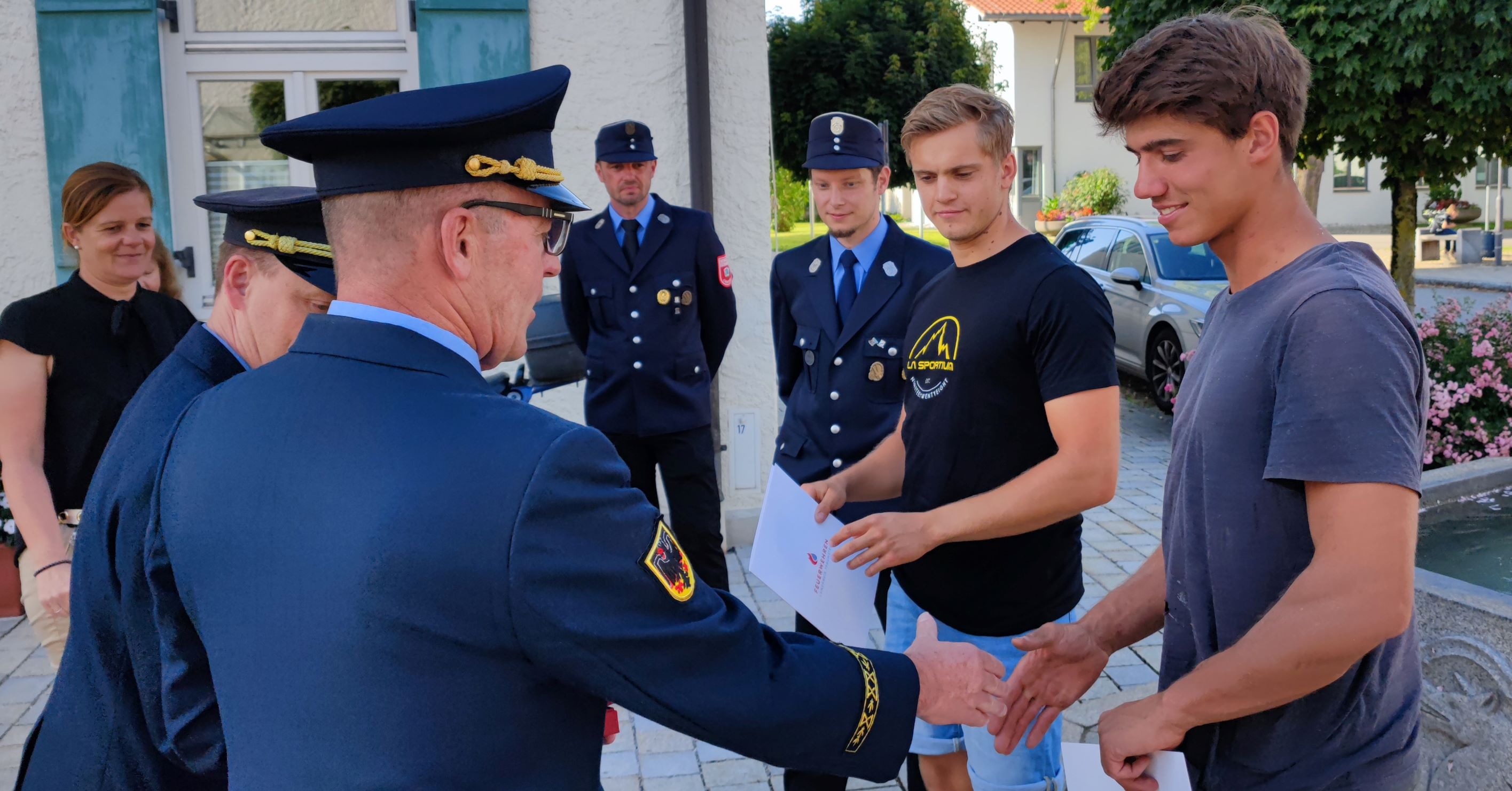 „Ich würde es sofort wieder tun!“, sagte David Fleps im Rahmen der kleinen Zusammenkunft vor dem Rathaus in Grassau. Kreisbrandrat Christof Grundner zeigte über das Verhalten der beiden jungen Männer sehr stolz. „Sie haben vorbildlich geholfen und eben nicht nur das Handy gezogen, um die dramatischen Szenen vor Ort zu filmen und um diese ins Netz zu stellen. Dies hat uns dazu veranlasst, den Beiden diese Ehrung zukommen zu lassen und auch die Gemeindeverantwortlichen im Rathaus waren von unserer Idee begeistert“.
