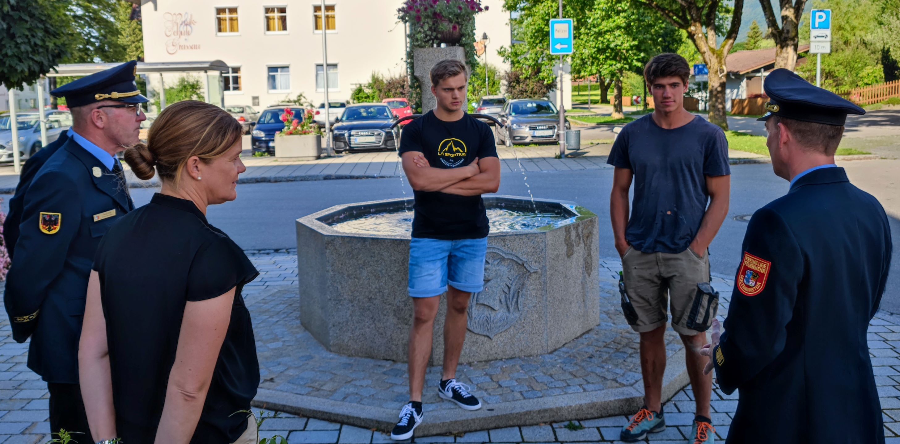 Zu der Verleihung der Auszeichnung waren auch die drei Grassauer Kommandanten Konrad Nagele, Michael Haslinger und Alfred Mayer gekommen und dankten den jungen Männern für ihren selbstlosen Einsatz und die schnelle Reaktion vor Ort. „Ihr habt bis zum Eintreffen der Rettungskräfte perfekt Erste Hilfe geleistet und dies ist aller Ehren wert und keinesfalls selbstverständlich“, so der 1. Kommandant Konrad Nagele. Die Einsatzkräfte der Feuerwehr Grassau wurden neben zahlreichen Rettungsdienst- und Wasserrettungseinheiten ebenfalls alarmiert und unterstützen die Ersthelfer bei den lebensrettenden Sofortmaßnahmen.